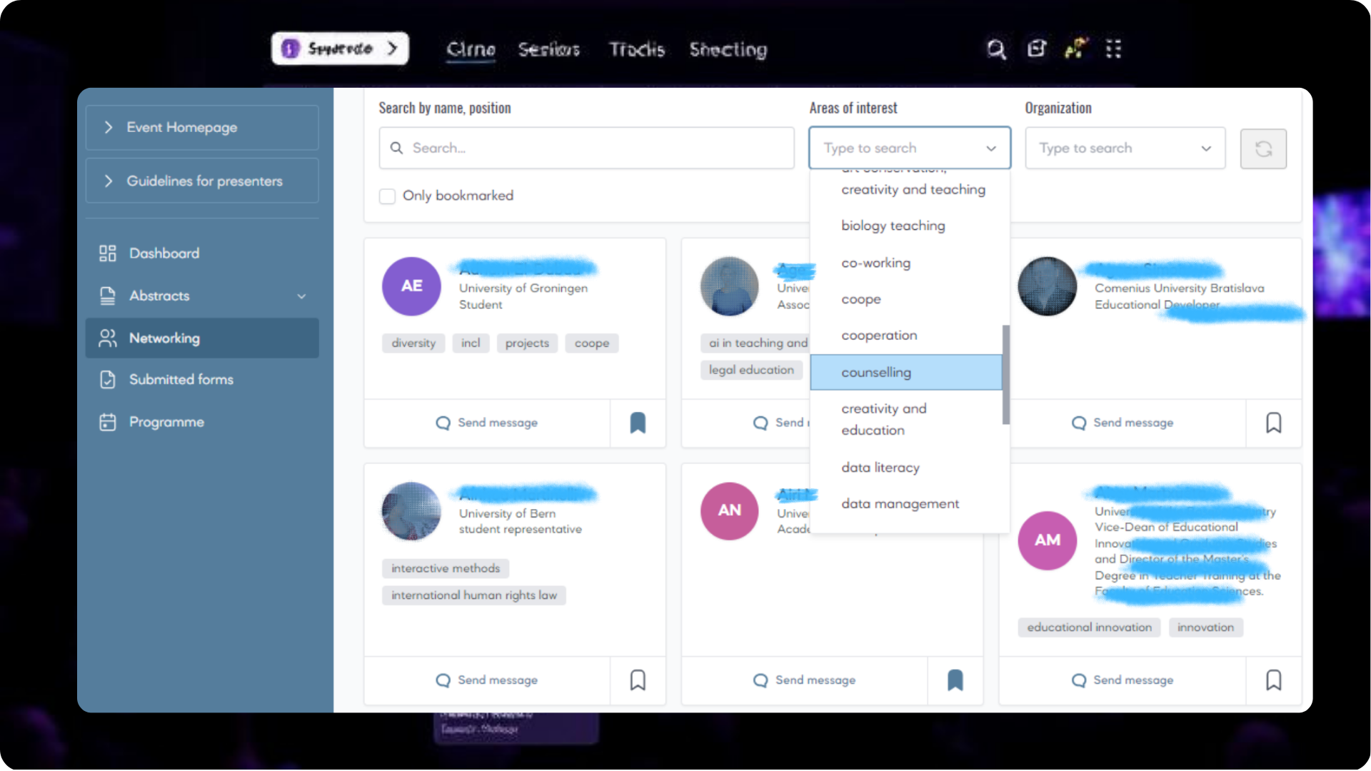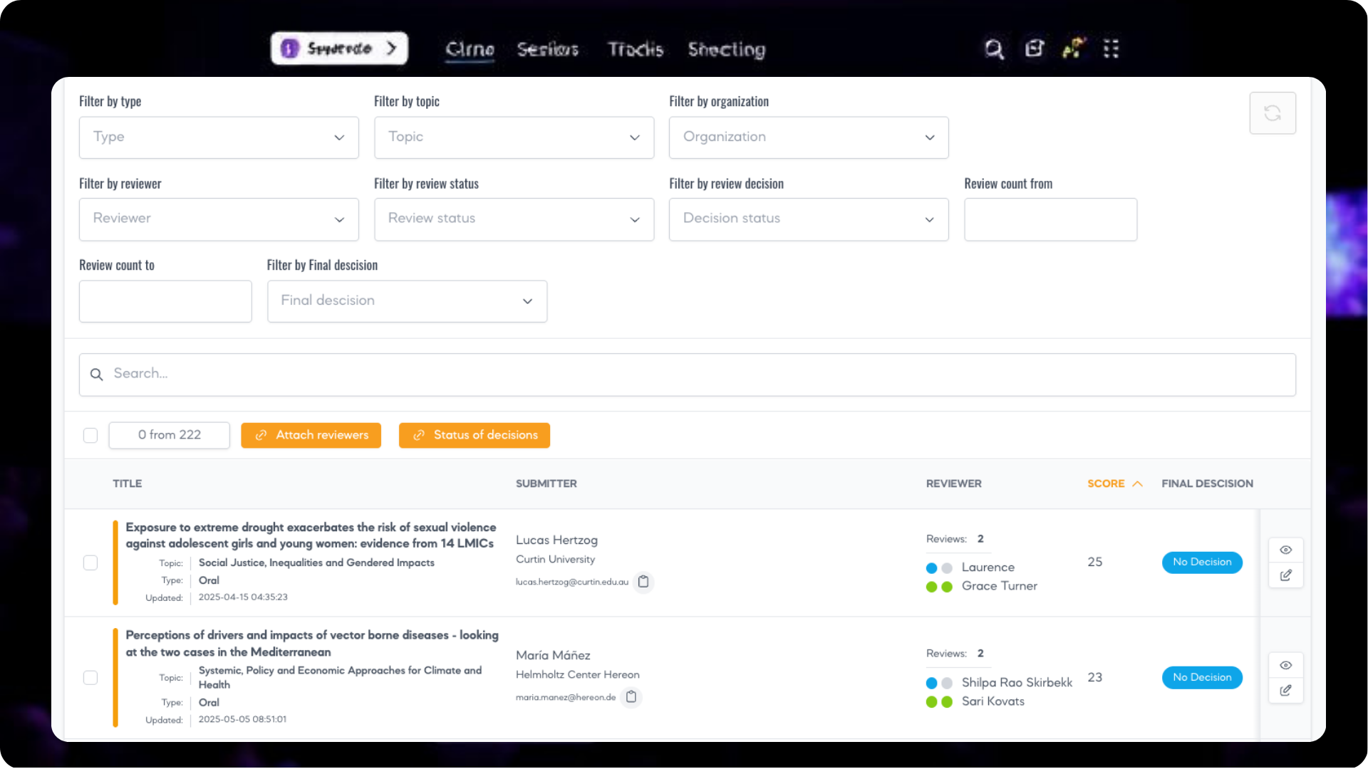 Ji taip pat padeda konferencijos organizatoriams atrinkti ir paskirstyti santraukas pagal sekcijas ir sesijas, taip pat valdyti visus konferencijos rengimo ir vykdymo aspektus.